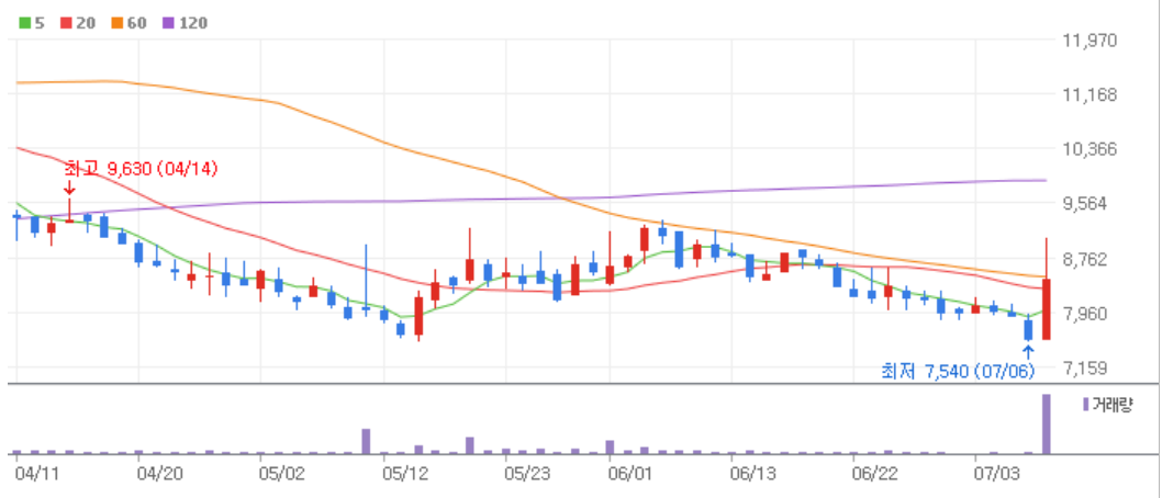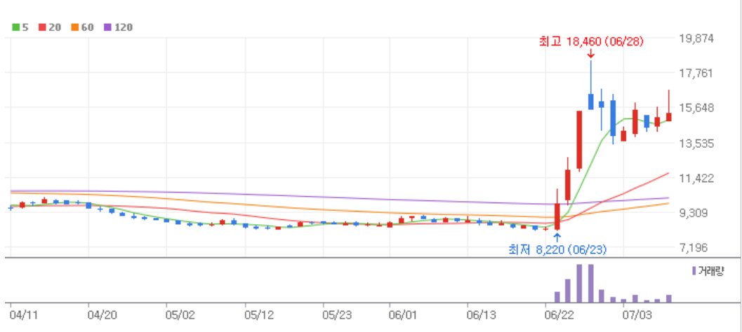 단기 8000원 대 바닥에서 대충 2배 정도 오른 종목이라....