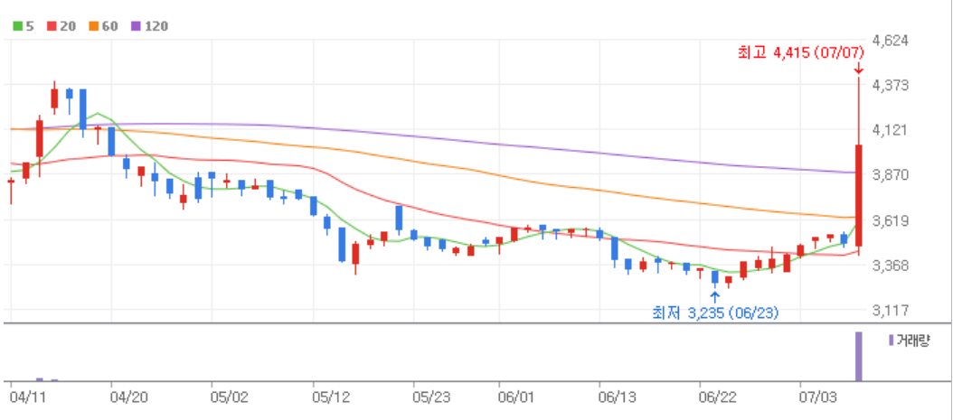 스레드 가입자 3000만명 돌파해서 메타의 비니지스 파트너로 부각되어 상한가