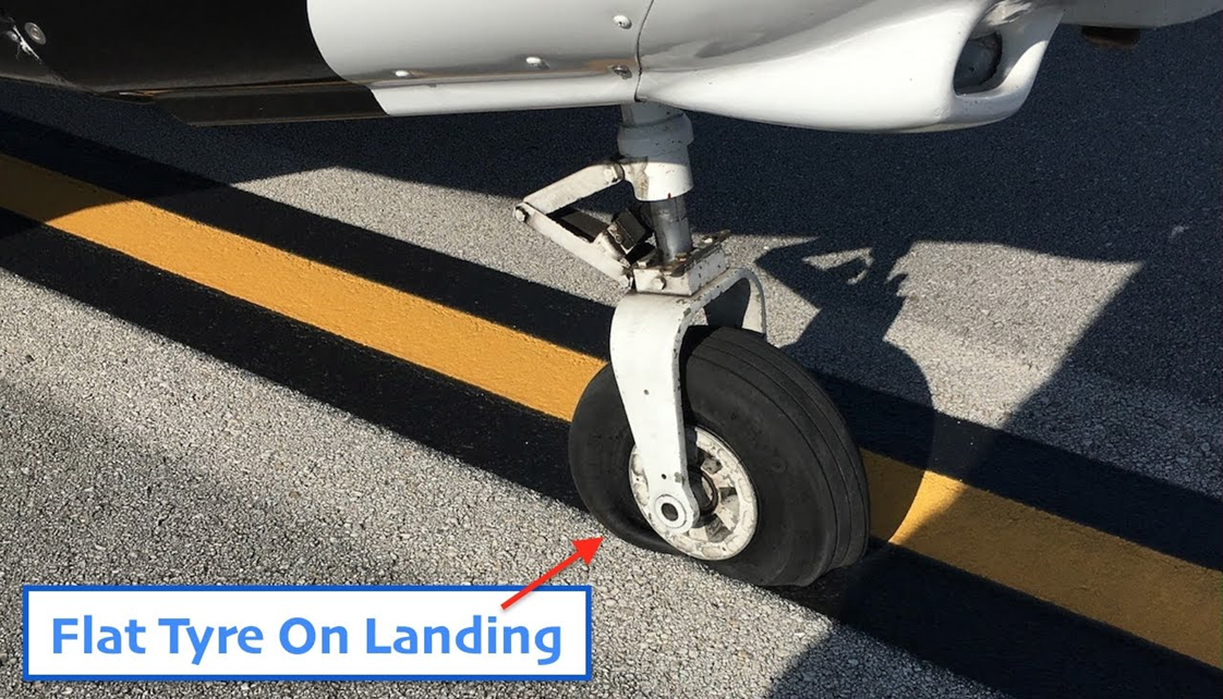 항공기 타이어의 공기압, 스크레치 등의 육안 검사를 시행 합니다