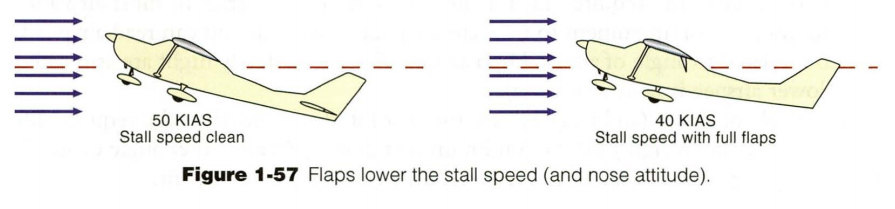 날개의 Angle of Atteck 이 거의 Stall 에 근접 했을때, Flaps 을 사용 한다면 사용 하지 않았을 때 보다 더 낮은 저속 비행도 가능합니다