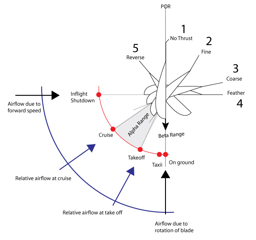 저속에서, Blade Angle 은 Small Angle of Attack 이 필요로 합니다. 이것은 Fine Pitch 로 불립니다.