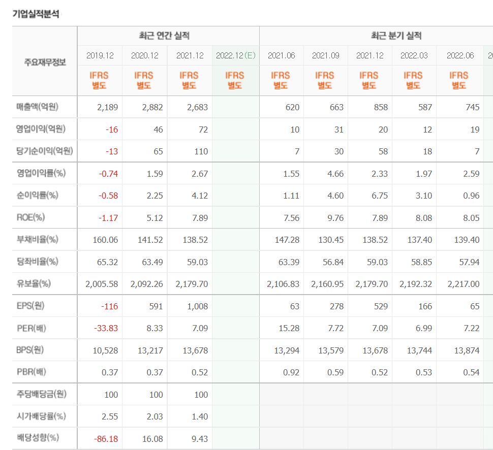 부채도 조금씩 줄고, 유보율도 살짝 증가 추세