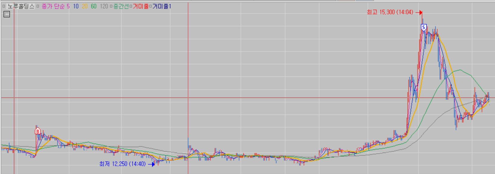 노루홀딩스 분봉 항상 눌림에 사자 눌림에....