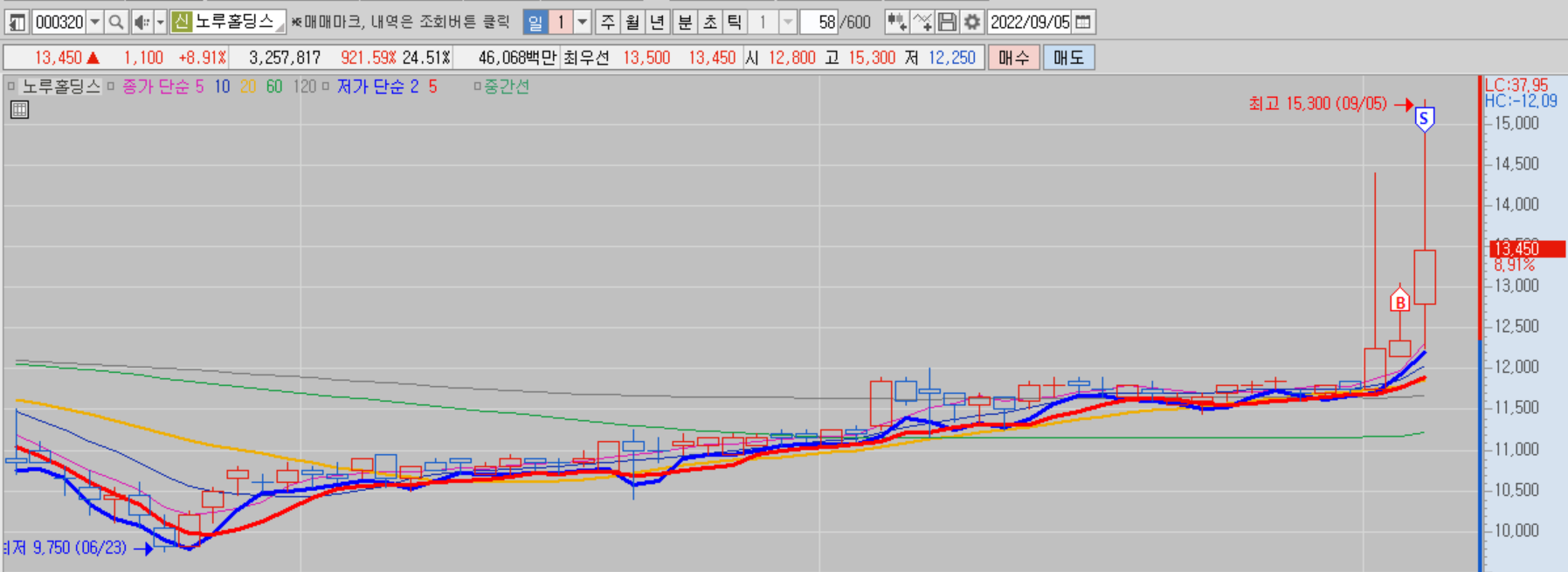 [급등주] 노루홀딩스·노루홀딩스우 주가 상승세 배경은? 2022.09.05 15:22