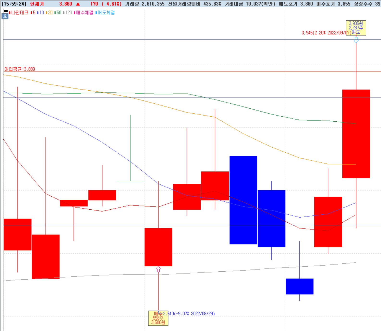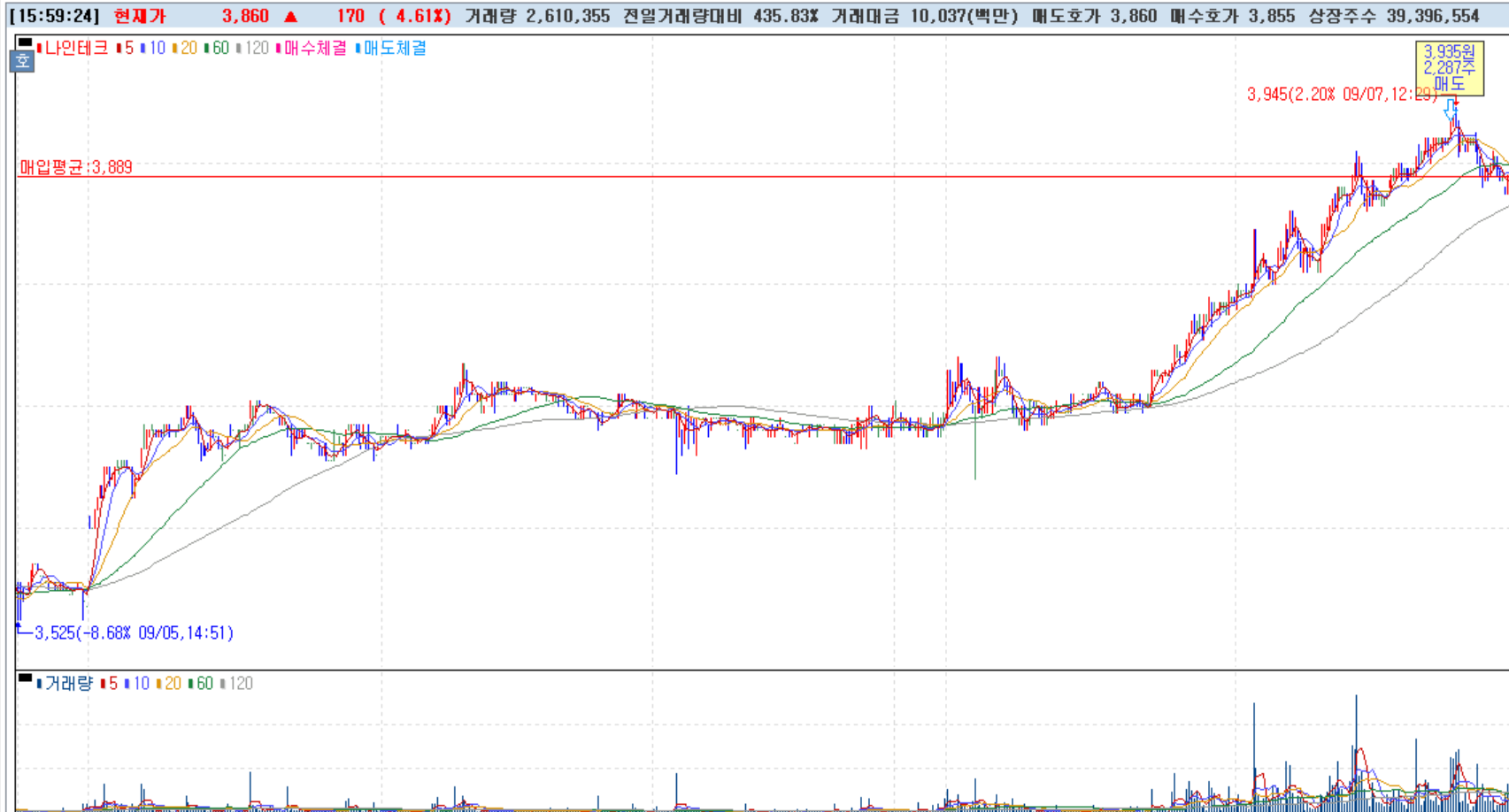 나인테크 일봉 차트 차트 위치적으로 뭐 크게 리크스 있어 보이지는 않음